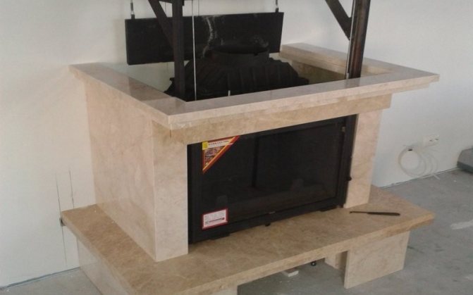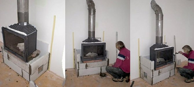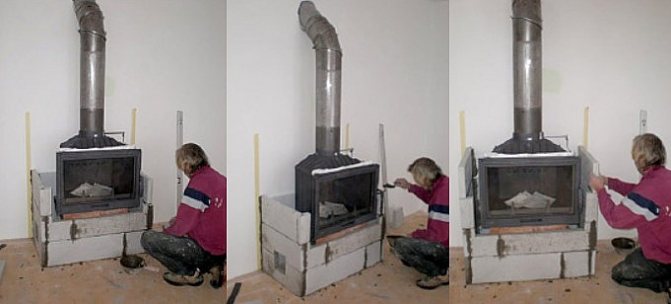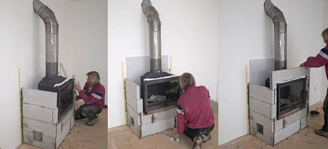 L'insert de cheminée est posé uniformément, la distance entre les parois de la fournaise et le revêtement, selon les codes du bâtiment, doit être de 3 à 7 cm, ce qui garantit la circulation d'air requise. Cette technique vous permet de fournir le chauffage le plus efficace de la pièce sans surchauffer le four. Laisser une distance plus courte peut réduire considérablement la durée de vie du foyer.