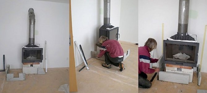 Il est également conseillé de calculer le poids de la future structure. S'il y a un poêle avec une surface de contact avec le sol d'environ 1 mètre carré, par exemple, il est situé au deuxième ou au troisième étage, son poids autorisé avec des planchers en bois ne dépasse pas 120 kg et avec béton pas plus de 750 kg. Si le poids du foyer dépasse ces valeurs, il faut prendre soin de réduire la charge sur les planchers. Vous pouvez redistribuer la charge sur une grande surface en érigeant un piédestal pour le four et des panneaux de particules à revêtement réfractaire. Un tel piédestal est également nécessaire si la cheminée est installée dans une pièce avec un plancher en bois.