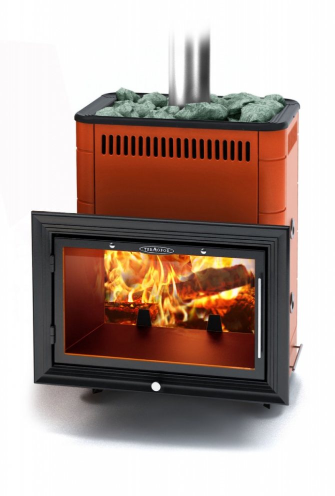 Eh bien, il est assez simple d'imaginer séparément un bain et une cheminée. Ensemble, ils signifient qu'un poêle conçu pour chauffer le hammam et créer les conditions de votre type de bain préféré peut, entre autres, être également une décoration. Pour ce faire, il suffit d'abandonner la porte en métal solide de la chambre de combustion, en la remplaçant par une porte en verre.