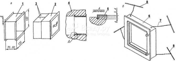 Quant à une telle porte, c'est armature en métaldans lequel est inséré vitrage simple ou double avec verre spécial résistant à la chaleur... Le cadre peut être fabriqué à partir de devenirou de fonte... Si vous le souhaitez, vous pouvez le compléter avec des éléments forgés.