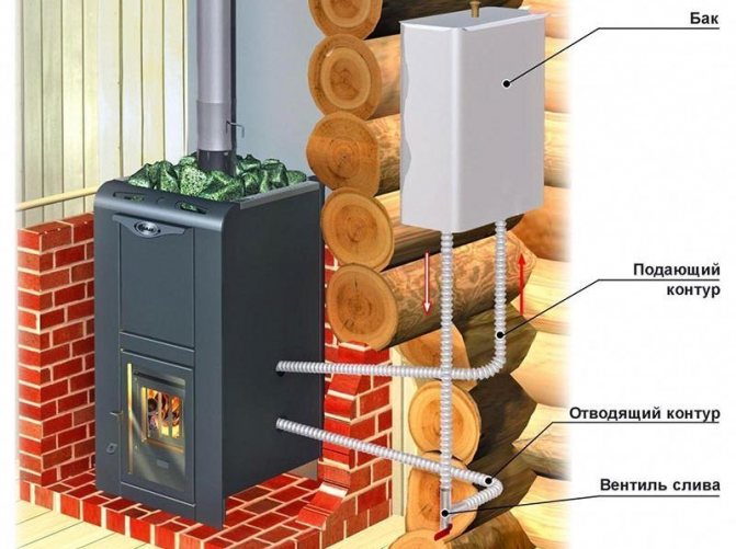 En outre, la commodité d'utiliser des poêles à foyer en acier est que la plupart des modèles sont livrés avec un réservoir d'eau, ce qui est nécessaire pour la fonctionnalité du radiateur. Un tel conteneur est également en acier inoxydable à haute résistance et peut avoir un volume différent (à partir de 50 litres ou plus). Selon la modification, le réservoir est situé soit au-dessus de la chambre du four, soit sur le côté du corps.