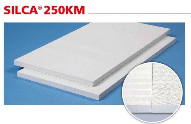 - Silca à 250 km. Matériel d'Allemagne. Les dimensions des dalles sont de 1000 * 625 * 40 avec une densité de 250 kg / m3. Le coefficient de conductivité thermique est de 0,09 à + 200 ° С, la température maximale d'utilisation est de + 1100 ° С. Spécialement conçu pour l'isolation thermique des cheminées, poêles, cheminées en brique. Sa structure n'est pas fibreuse. Silca 250km peut être utilisé aussi bien comme isolant que comme matériau de revêtement. C'est inoffensif. Ne nécessite pas l'utilisation d'un cadre métallique supplémentaire lors de l'installation. Il peut être utilisé comme isolation thermique des murs en bois aux endroits de contact avec les éléments de la chambre de combustion.