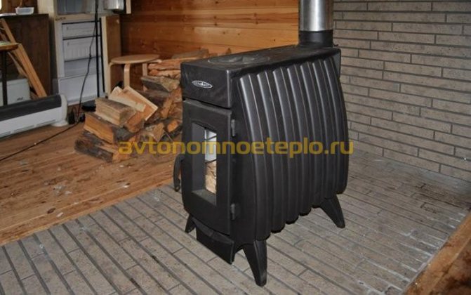 - La présence d'un brûleur fonctionnel. Constitué d'une paire de cercles en fonte, il permet de chauffer de l'eau dans n'importe quel récipient, ainsi que de cuire des aliments à moyen terme. Dans le même temps, la fumée reste à l'intérieur, même avec un accès ouvert au feu par le haut.