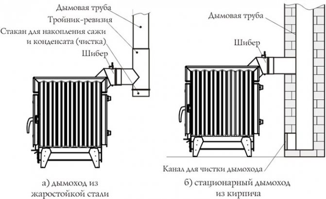 - Le choix du matériau - pour le mode de combustion longue, les caractéristiques de traction sont essentielles. Le manque d'intensité de désenfumage conduit à l'accumulation de résine et à une prolifération accélérée du tuyau. Pour le raccordement, une cheminée isolée en acier inoxydable, comme un sandwich, convient, ainsi qu'un analogue en céramique.