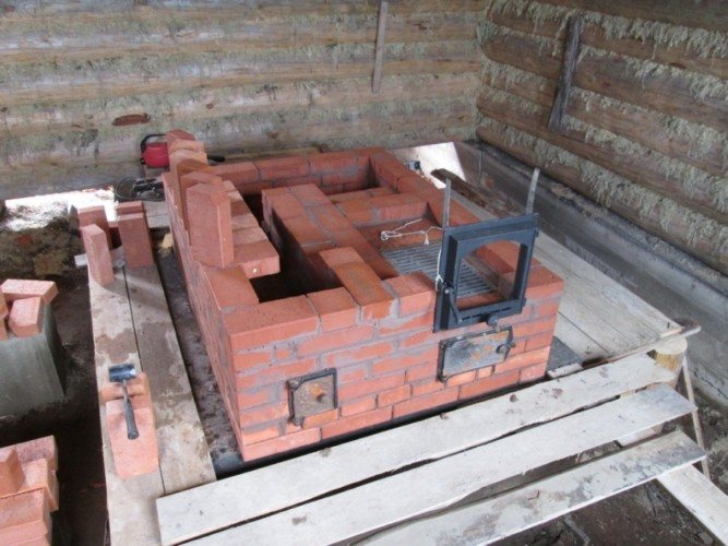 Noter! Dans le but de chauffer les pièces adjacentes, un four en briques est parfois intégré directement dans la cloison.