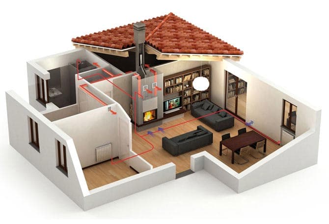 Tout d'abord, le principe de fonctionnement du radiateur aidera à déterminer l'emplacement optimal du poêle dans la maison. L'emplacement peut varier selon qu'il est possible de construire une cheminée sur un site particulier et d'équiper la bonne zone d'opération.