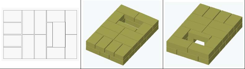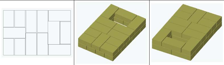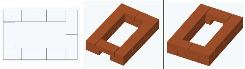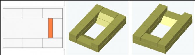 Photo 3. Une variante de la commande du four 4 par 4 briques. La céramique est représentée en orange, l'argile réfractaire en jaune.