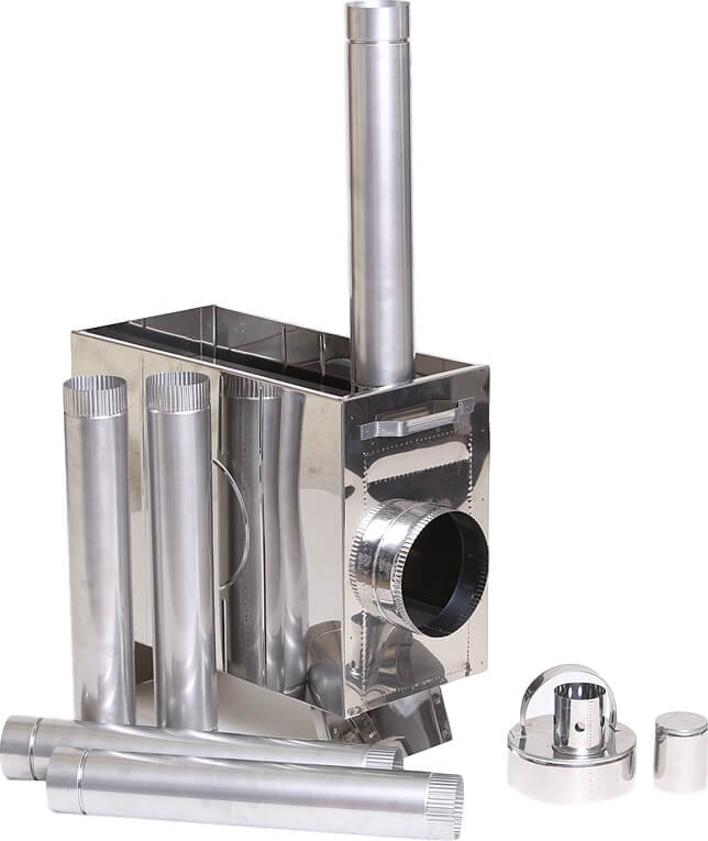 De plus, le four pour le bain mobile "Pashekhonka" est équipé d'une cheminée d'un mètre et demi avec deux genoux amovibles. Avec leur aide, la cheminée est plus facile à adapter à un auvent spécifique, et la sortie de fumée peut être ajustée dans une direction spécifique.