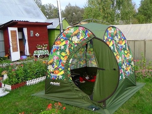 Quant aux tentes, il y a aussi 2 chefs ici. La marque Mobiba est plus connue sur le marché intérieur, mais je lui consacrerai un chapitre séparé. Immédiatement derrière elle dans la cote de popularité se trouve un auvent de bain.