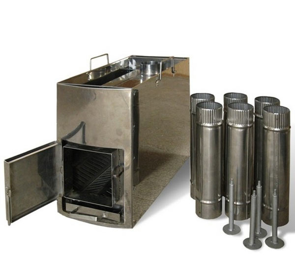 Bien sûr, un bain dans la nature, assemblé de vos propres mains à partir de moyens improvisés, est rempli d'une romance particulière, mais sa construction prend beaucoup de temps et d'efforts. Par conséquent, un bain de camping en série avec un poêle est maintenant plus populaire, et vous pouvez également cuisiner le déjeuner sur un tel poêle.