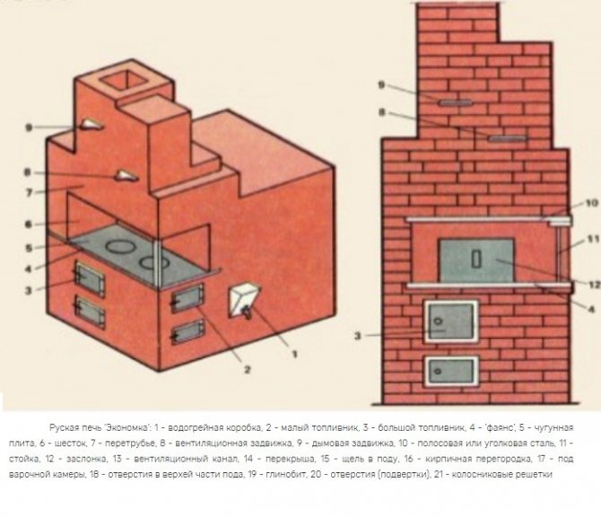 Le poêle russe sans banc de poêle a ses propres caractéristiques structurelles des canaux pour éliminer les gaz chauds et la fumée.