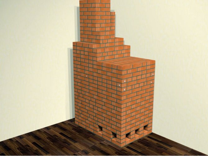 30 - 33, un bouchon à trois rangées est installé au-dessus du conduit de ventilation, conformément à l'exigence de sécurité incendie. La cheminée prend une section transversale de la taille d'une brique.