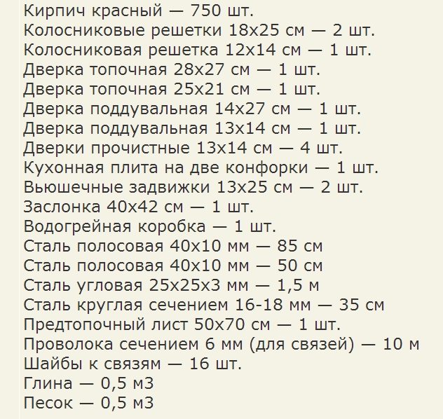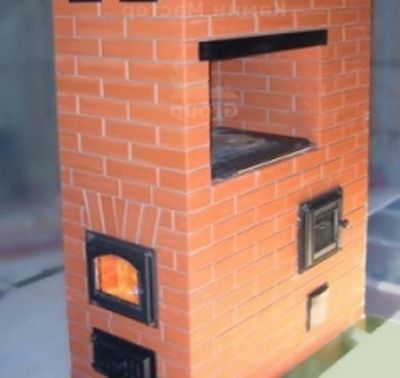 A ses propres caractéristiques et conception de la chambre de combustion... Le grand principal est situé à l'avant et le petit supplémentaire est sur la paroi droite du poêle. Un poêle en fonte leur est superposé, conçu pour cuire une grande variété d'aliments, qui dispose de deux brûleurs de tailles différentes. Le plus grand chevauche la chambre de combustion principale.