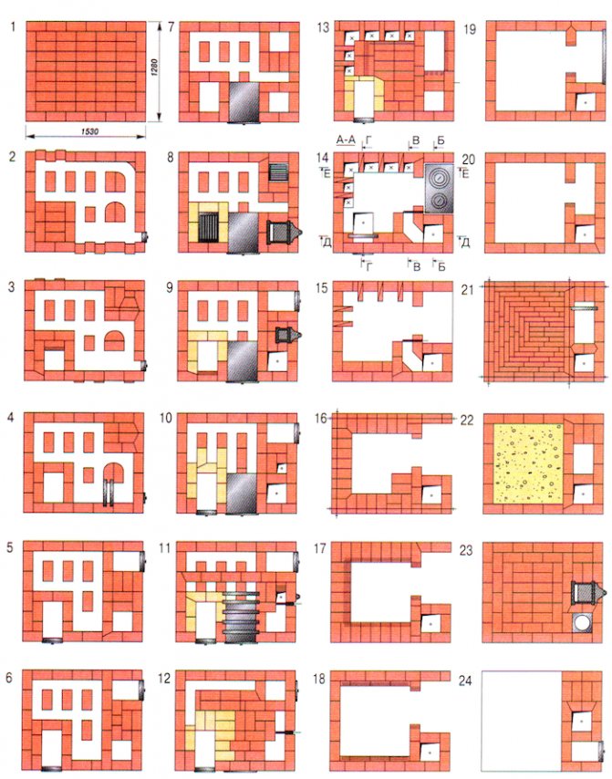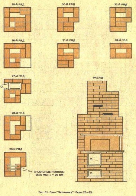 La troisième couche - la porte du cendrier hypothéqué et les portes sont installées. Pour augmenter le volume, vous pouvez poser le cendrier d'un petit four, ou vous pouvez le faire dans la rangée suivante. (les portes de nettoyage ne sont pas indiquées sur le schéma)