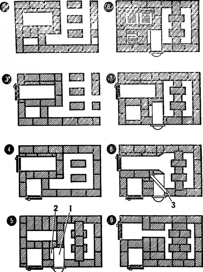 Dans le septième, une grande porte est placée, et la 8e est petite et, à l'aide de bords coupés, une expansion de la cheminée se forme, vers la cloison chauffante.
