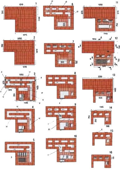 En ouverture du 8. Aux 9e et 10e rangées, une porte de fournaise est installée - la partie la plus instable de la fournaise. En raison d'ouvertures et de fermetures constantes, il se desserre et finit par tomber de l'ouverture. La fixation avec du fil ou des pinces n'est pas fiable et de courte durée, c'est pourquoi la porte doit souvent être refixée lors du démontage de la maçonnerie du four.