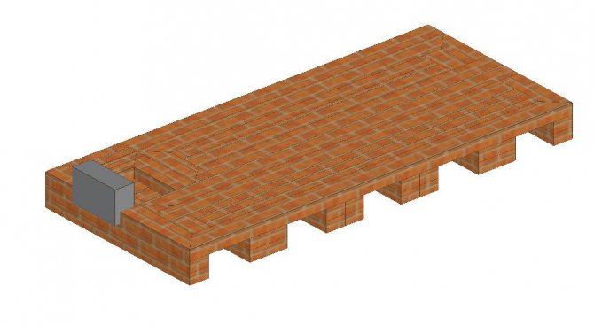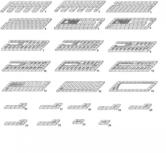 - En disposant la 11e rangée, vous commencerez déjà à former la chambre de cuisson (VC), par conséquent, briquez le trou qui est apparu à droite sur toute la longueur. Utilisez QC lors de la création d'une série. Si vous mettez une porte amovible, le VC peut faire office de four.