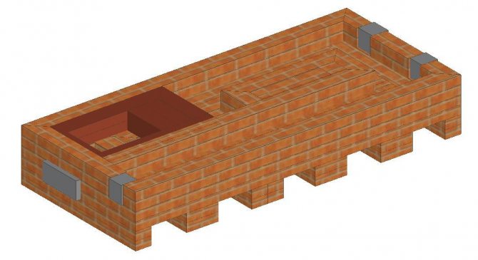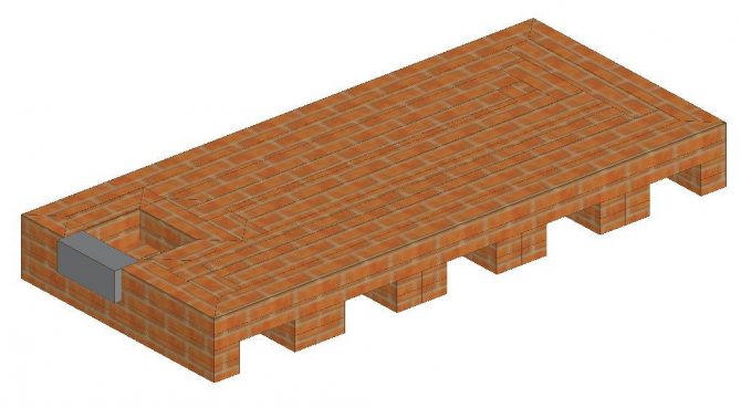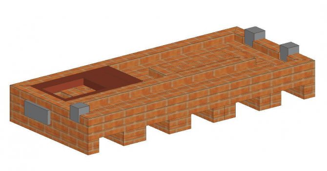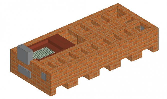 - Le sol est recouvert d'une voûte circulante ou "auge". Un matériau qui peut garder longtemps la chaleur s'y réveille : sable, éclats de brique, etc.
