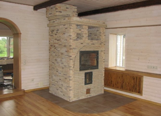 Lors de la planification d'un canapé, vous devez tenir compte du fait que sa hauteur optimale est de 90 cm. Cela garantira un chauffage de haute qualité de la zone inférieure de la pièce. De plus, les personnes de différentes hauteurs seront à l'aise pour s'asseoir sur le canapé. Lors de la conception, il est préférable de privilégier une hotte plutôt qu'une cheminée à conduits - cela augmentera le temps de refroidissement de la structure.
