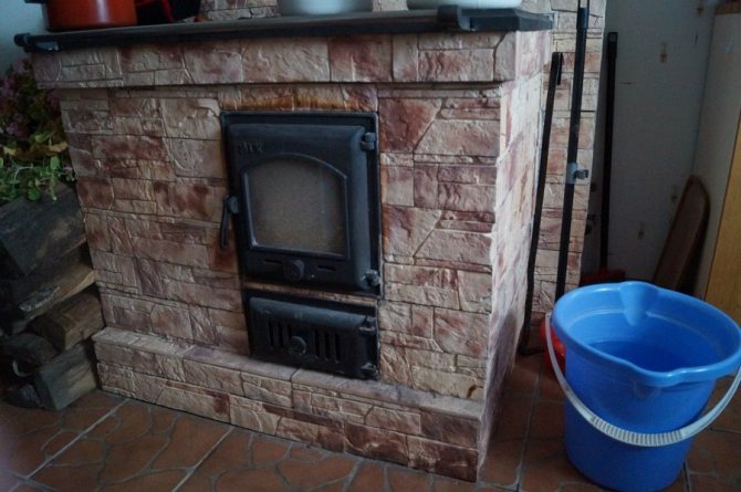 Poêle fini avec de la pierre décorative