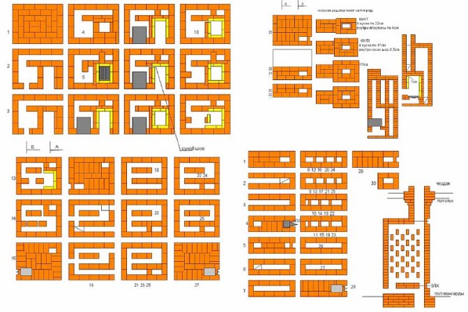 - La rangée 17 chevauche VK. Pour que la vapeur s'échappe, vous devez laisser un trou égal à la moitié de la brique.