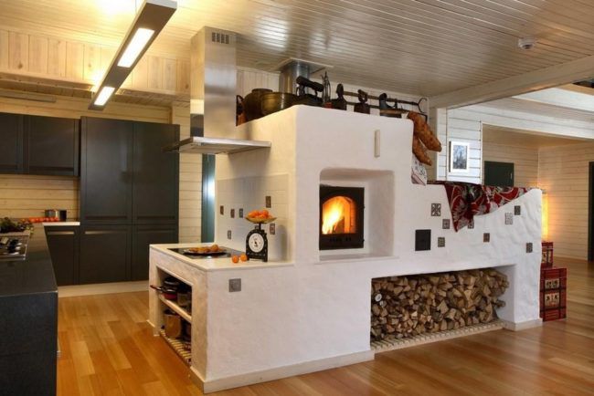 Un poêle avec un banc de poêle est mieux placé entre les pièces à vivre et la cuisine. Le plus souvent, le coin cuisine ne permet pas de faire entièrement une cuisinière, par conséquent, seuls un four et une plaque de cuisson (VP) y sont présents. Mais la cuisine n'y perd rien, car lors de la cuisson des aliments, le Suédois a le temps de les réchauffer.