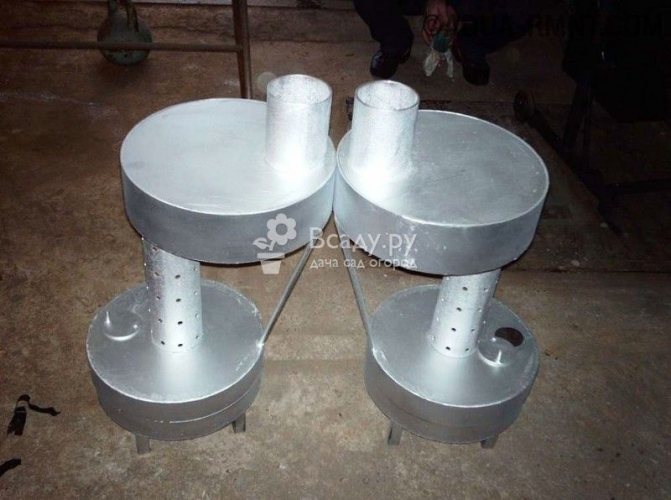 Une option courante est un dispositif de tuyau. Il est nécessaire de préparer deux pièces d'un diamètre de 35 et 10 cm.Le four obtenu pourra chauffer une pièce jusqu'à 80 mètres carrés.