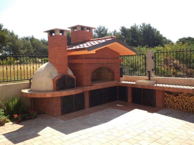 Ce type de four est une option plus simple qu'un appareil avec un barbecue. Cependant, il présente une particularité qui complique considérablement la procédure de construction - sur une plaque en acier pour la cuisson. il est nécessaire de construire un arc ou un autre étage, qui sera en mesure de fermer le produit préparé des effets négatifs des conditions météorologiques.