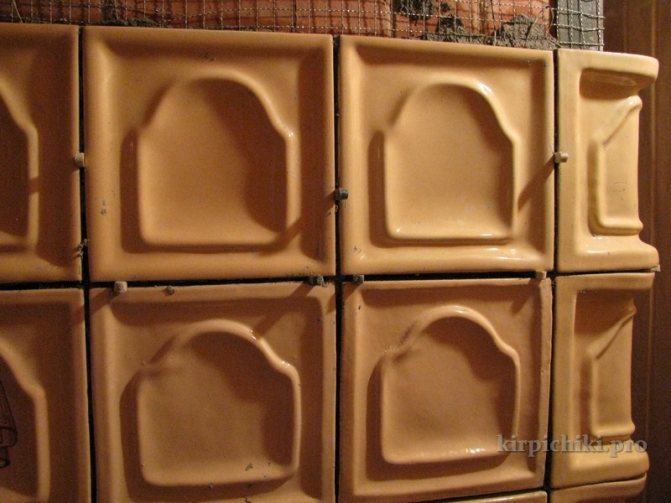 - De plus, les carreaux sont remplis de l'intérieur de chamotte ou de cailloux et l'espace autour de la barre est obstrué par une solution prête à l'emploi. Selon ce principe, tout le revêtement des poêles en faïence est réalisé.