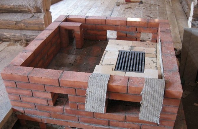 - Rad 5 est nécessaire pour la chambre de combustion. La maçonnerie est réalisée en briques réfractaires. Une grille est montée en bas et un espace de cinq millimètres est laissé. Pour plus de stabilité, ils sont recouverts de sable. Ensuite, le four est installé et la fixation se fait de la même manière.