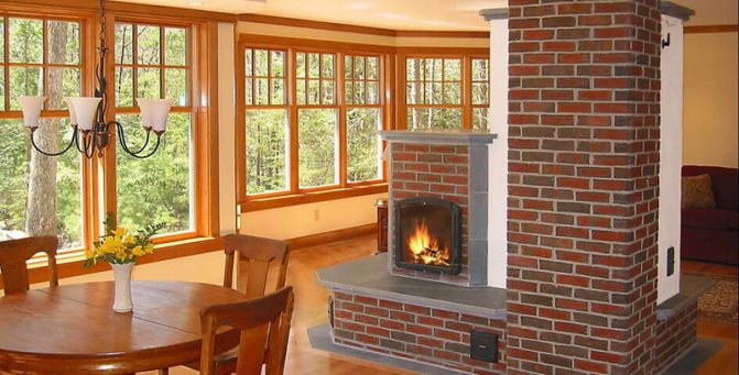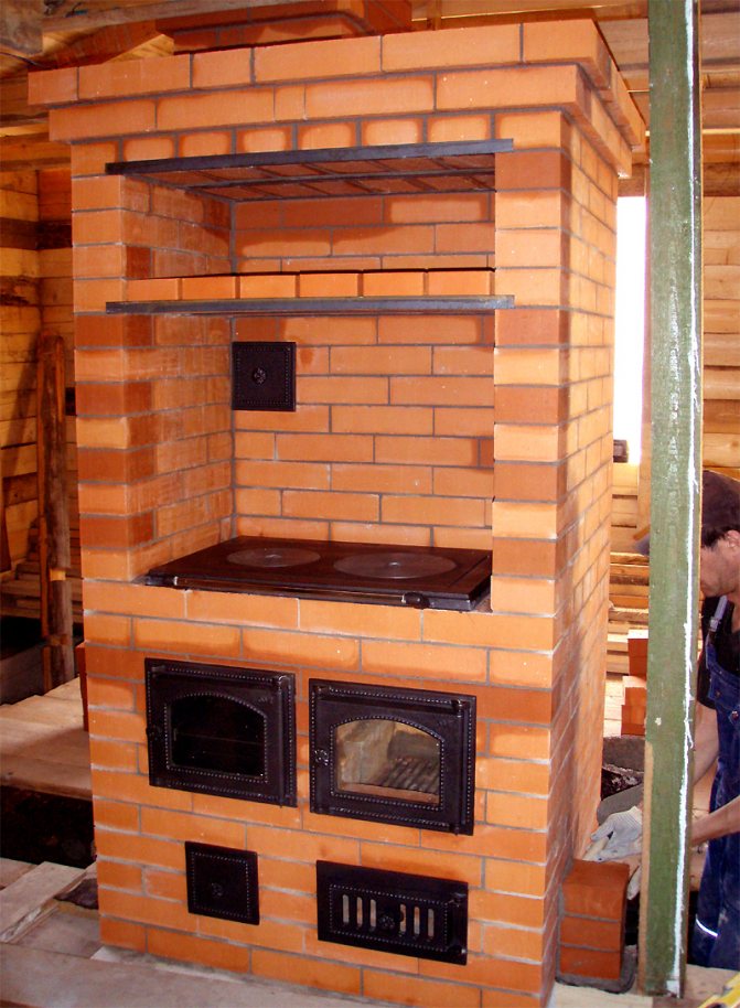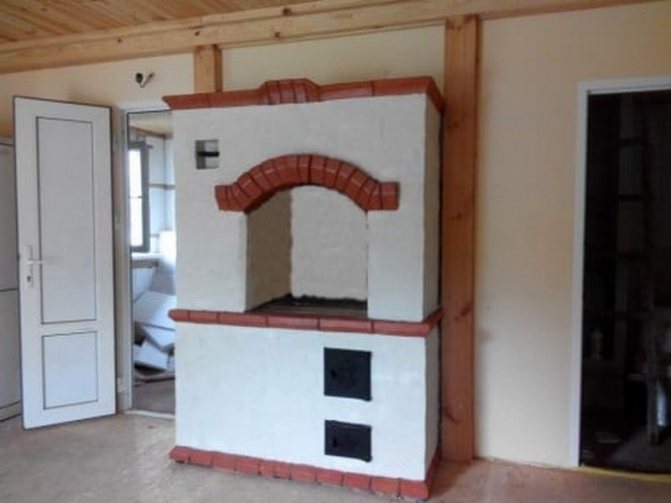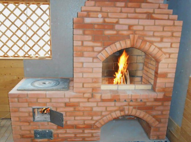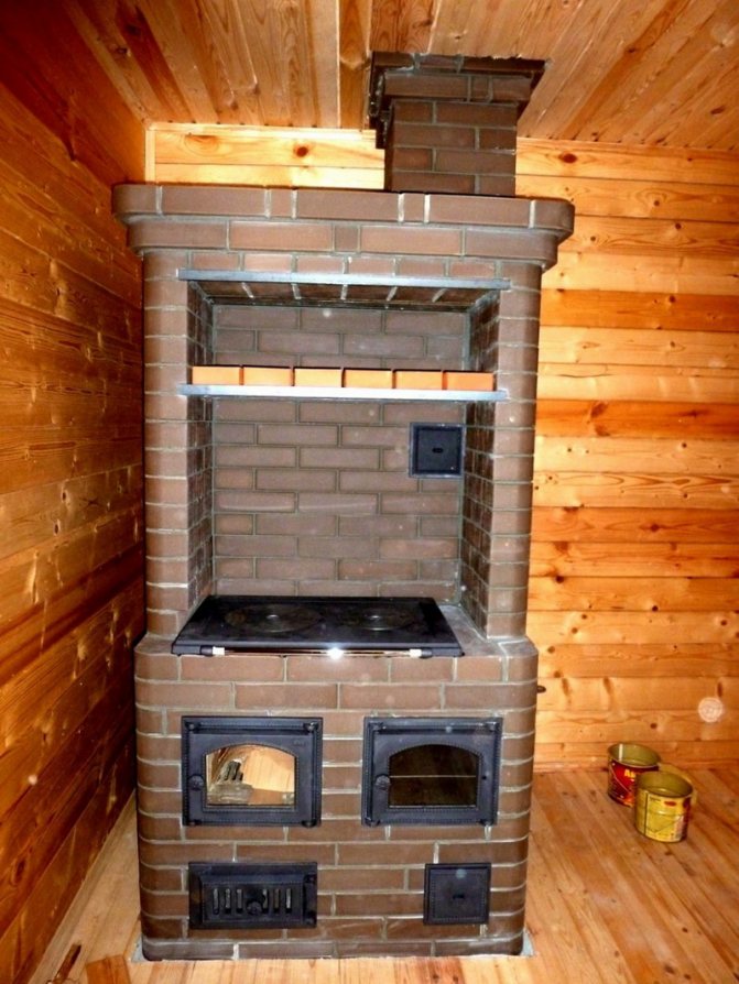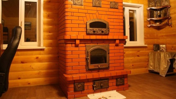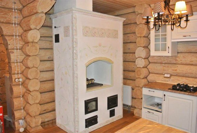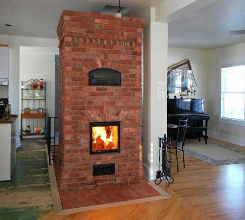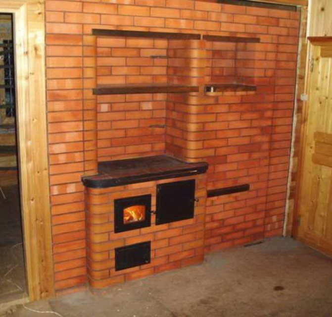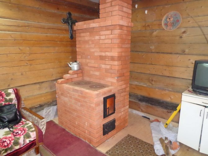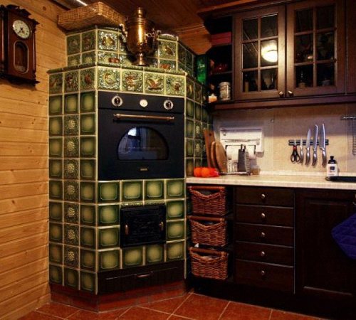 Souvent, de telles structures sont installées dans des maisons de campagne dans des chalets d'été. Cela est dû aux avantages du dispositif de chauffage. Si vous construisez un four de taille moyenne, cela ne prend qu'un mètre carré. Chauffe rapidement et bien deux pièces. Le foyer est équipé du côté de la cuisine, et l'arrière est dans la pièce (hall ou chambre).