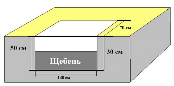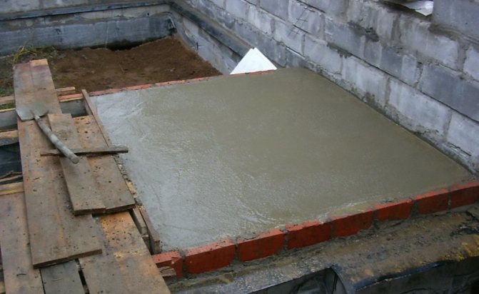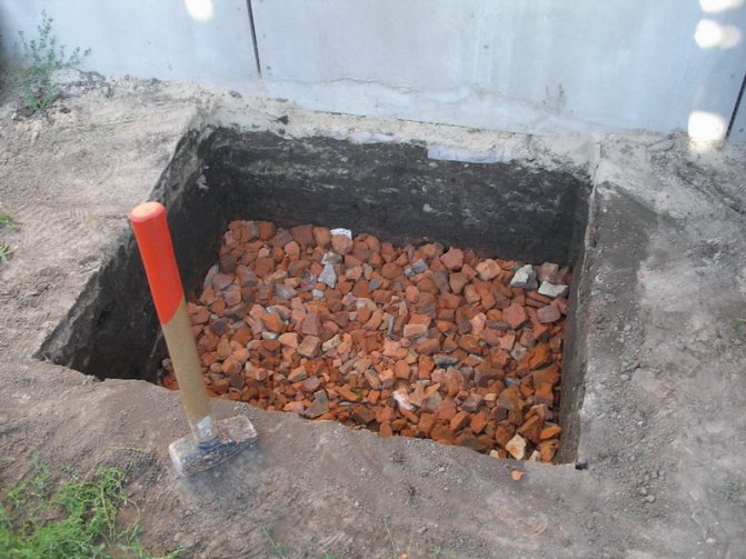 La fondation est faite de briques brisées et de pierres concassées et coulée en couches avec du béton. La dernière couche doit être recouverte d'un imperméabilisant.
