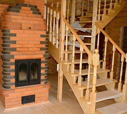 L'arrière d'un tel poêle est un endroit idéal pour créer un banc de poêle, une cheminée. A la place de la chaise longue, vous pouvez créer un lit suédois. Le chauffage longue durée vous permettra de bien dormir en hiver.Ils créent également des boîtes pour le linge, qui est toujours sec et chaud.