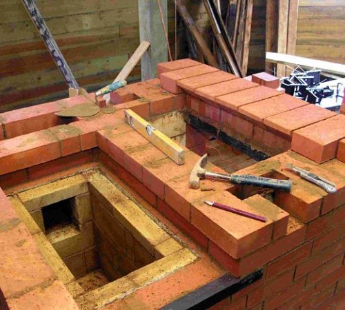 Afin d'obtenir un haut niveau d'efficacité et de brûler efficacement le carburant avec un dégagement de chaleur maximal, la section de combustion doit être correctement équipée. La température à l'intérieur de la chambre de combustion doit être élevée, car cette chaleur est générée et le four chauffe. Cet élément du four est fait de briques d'argile réfractaire jaune clair. Pour la fabrication de mortier pour maçonnerie, on utilise de l'argile réfractaire. Veuillez noter que la brique rouge ordinaire et sa version en argile réfractaire diffèrent par le coefficient de dilatation thermique, de sorte que leur empilement proche l'un de l'autre est inacceptable. L'intervalle entre ces types de briques doit être de 0,6 cm.