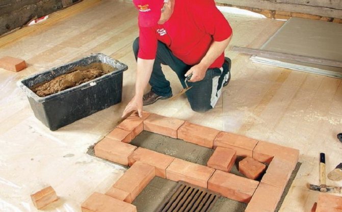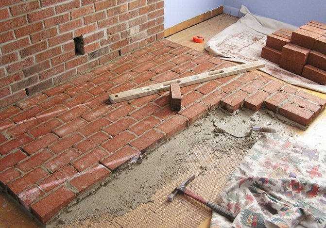 - Lors de l'installation de la table de cuisson sur une brique, un mortier d'argile est placé en dessous. Cela empêchera la brique de chauffer.