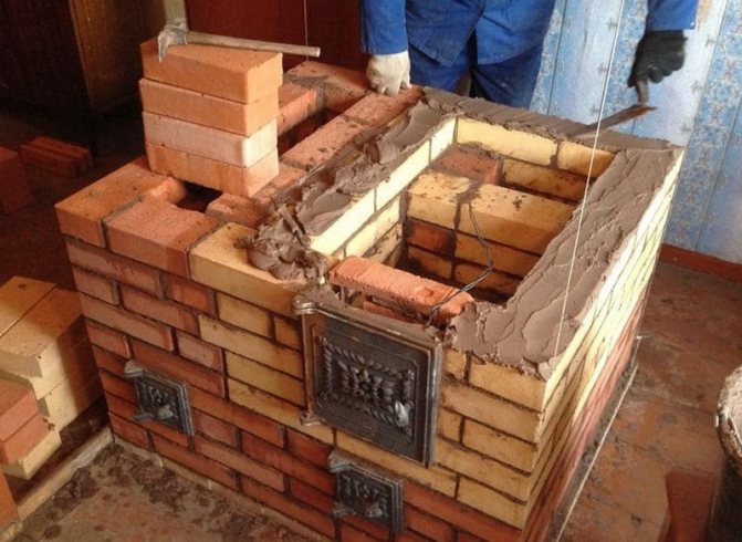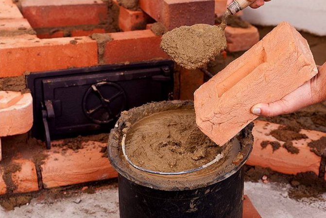 Avant de commencer à poser une brique, celle-ci est immergée dans l'eau pendant quelques minutes. Ainsi, la qualité de la maçonnerie est améliorée. Sinon, la brique sèche commence à absorber rapidement l'humidité de la solution, réduisant sa résistance. Une exposition excessive de la brique à l'eau affecte également négativement sa qualité. Par conséquent, la brique doit être modérément humide. La marne est utilisée pour la fabrication de mortier de maçonnerie. Certaines options de poêle sont équipées d'argile ordinaire. Les briques des fourneaux sont posées à la main sur une solution préalablement préparée en petites portions.