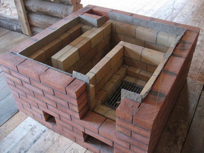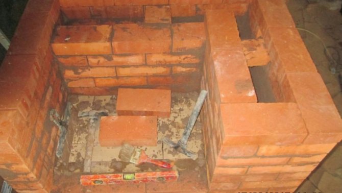 7ème rangée.Une chambre de combustion est installée. Requis : brique ordinaire - 13 pièces, argile réfractaire - 4 pièces.