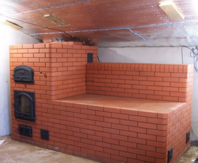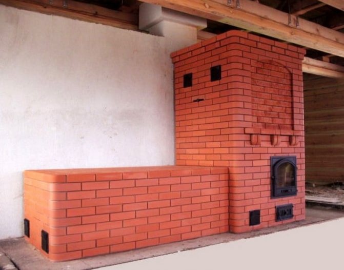 De plus, le poêle peut être équipé d'un banc de poêle. Pour la fabrication d'un tel four, beaucoup plus de briques sont nécessaires.Cependant, le lit peut être utilisé comme lieu de couchage ou pour sécher beaucoup d'articles humides.