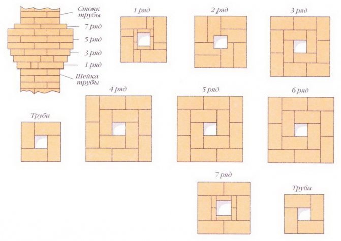 30e et 31e rangs. La base du tuyau est formée à l'aide de 5 pièces. briques dans chaque rangée.