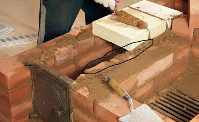- Des rangées du septième au neuvième - ce sera la maçonnerie du compartiment du four - des briques en argile réfractaire sont utilisées ici. Un espace doit être laissé entre elle et la brique rouge pour éviter la dilatation thermique. L'espace n'est pas rempli de solution. Cette étape est également utilisée pour monter la porte du foyer.