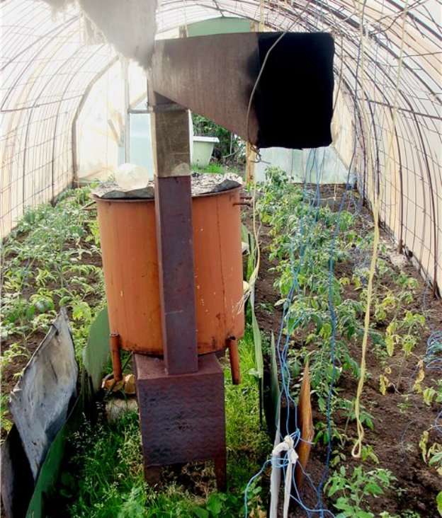 Métal un réchaud à ventre plat est assez simple à construire, il est recommandé de le faire cuire à partir d'un vieux fût ou bouteille de gaz, taille 1,5 mx 0,5 m... Une caractéristique négative distinctive sera l'incapacité de retenir la chaleur, par conséquent, dès que le combustible dans le poêle brûle jusqu'à la fin, la serre commence à se dessécher.
