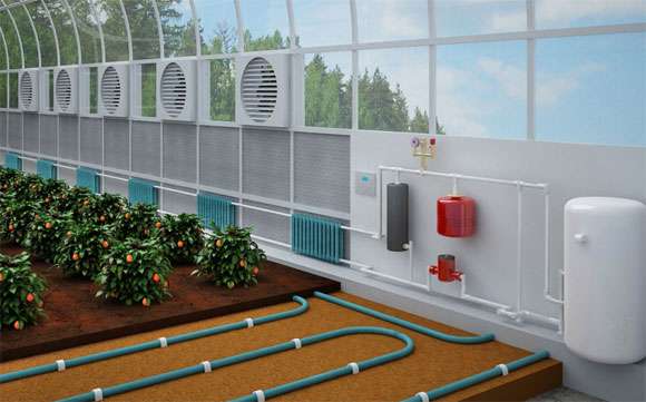 Si la maison est reliée à une conduite de gaz, le moyen le plus simple de chauffer la serre est directement de la maison. Pour ce faire, un tuyau est coupé dans le système de chauffage domestique, amené dans la serre et renvoyé au système. Cette option est avantageuse si:
