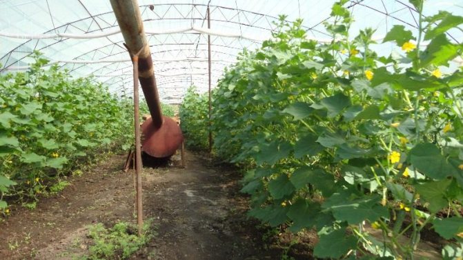 Les dimensions d'un tel appareil peuvent être différentes, en fonction de la surface de la pièce, canal de fumée donne généralement le meilleur toute la longueur de la serre - étant situé au centre, il contribue à un chauffage uniforme et de haute qualité de l'air.