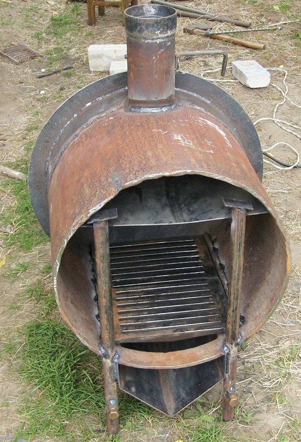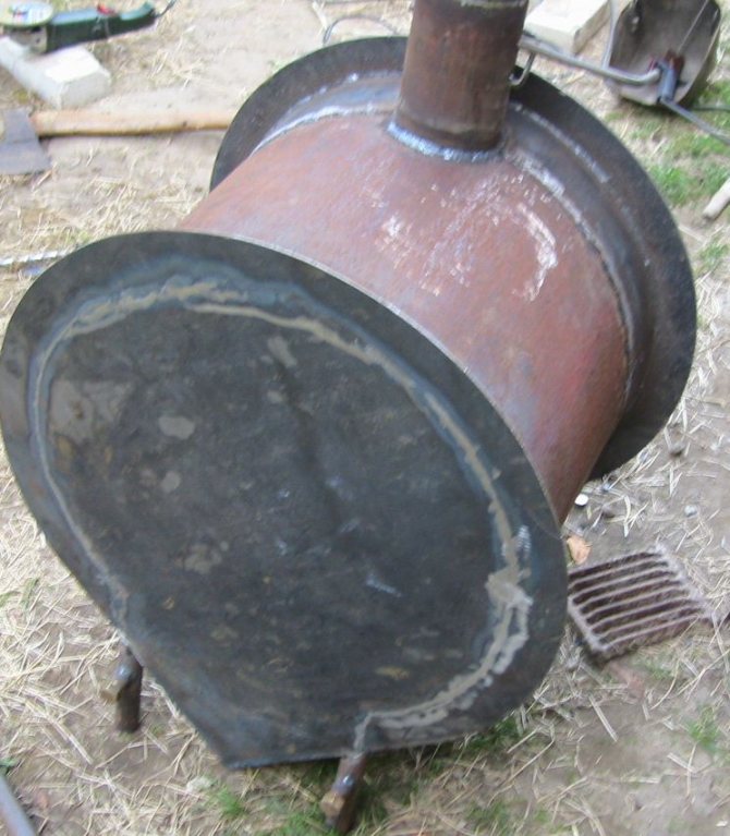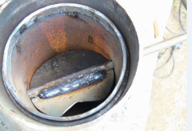 - La partie inférieure du tuyau de cheminée est soigneusement soudée. Il est souhaitable que le produit repose sur ses pattes.