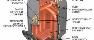 - foyer à deux chambres: un compartiment est prévu pour le raccordement au gaz, le second pour la postcombustion du combustible;