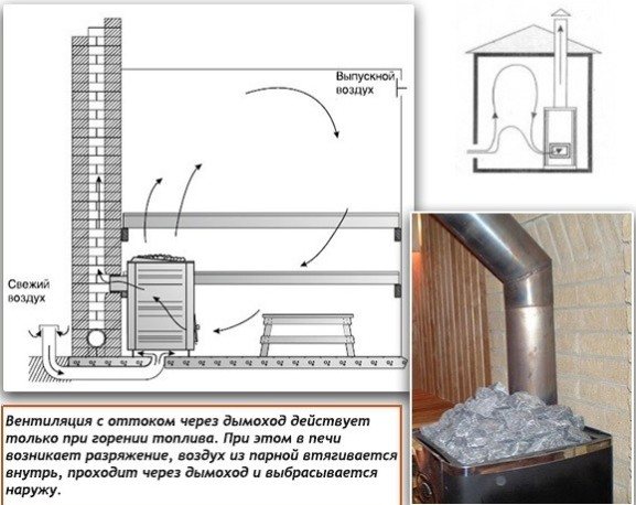 Une autre raison pour laquelle le nouveau poêle commence à fumer est une mauvaise ventilation. En règle générale, en équipant un système de ventilation de type forcé, les propriétaires du bâtiment ne prévoient une hotte aspirante que dans les pièces fonctionnelles - une unité sanitaire, une cuisine ou un dressing. Cependant, un conduit de fumée séparé doit également être équipé dans les pièces où un mouvement normal des masses d'air est requis: dans un hammam et une salle de lavage.