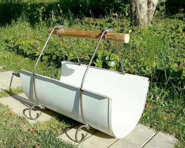 | Comme poignée pour un support portable, l'artisan a utilisé une poignée de pelle, qui est coupée à la longueur requise. Il est important que la tige soit bien traitée, sinon vous pouvez facilement vous blesser la main ou planter un éclat dessus. Sinon, le bois est la meilleure option pour le manche - il est agréable à utiliser et fiable. |