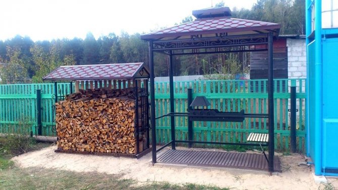 L'installation de stockage extérieur pour le bois de chauffage peut être autonome ou attachée. Le plus souvent, il est équipé d'un bain public, de sorte qu'il est pratique et efficace de transporter du bois de chauffage. Même un débutant peut construire indépendamment une telle structure sur son site.