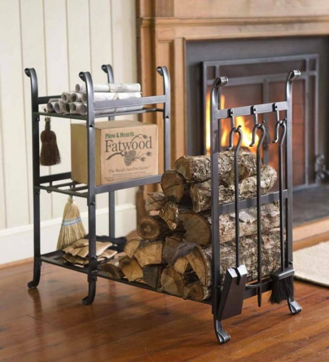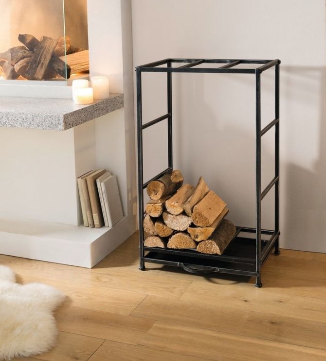 Le microclimat sec et chaud de la maison permet au bois d'être toujours prêt à l'emploi.Cependant, lorsque vous apportez une autre pile de bois de chauffage de la rue, vous devez souvent la sécher un peu, afin de ne pas allumer un feu avec des bûches brutes. Les solutions stationnaires aident à cela, lorsque le bois de chauffage du foyer se trouve à proximité immédiate de celui-ci.