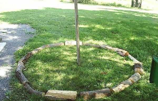 Si vous n'avez pas de bûcher fixe, vous pouvez plier les cales en forme de tour de baril. Il est nécessaire de conduire dans un pieu. Il servira de base à la structure en construction.